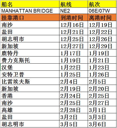 据了解,着火船舶MANHATTAN BRIDGE目前服务于亚洲--欧洲航线的NE2, 事发时正执行航次:MANHATTAN 07W。