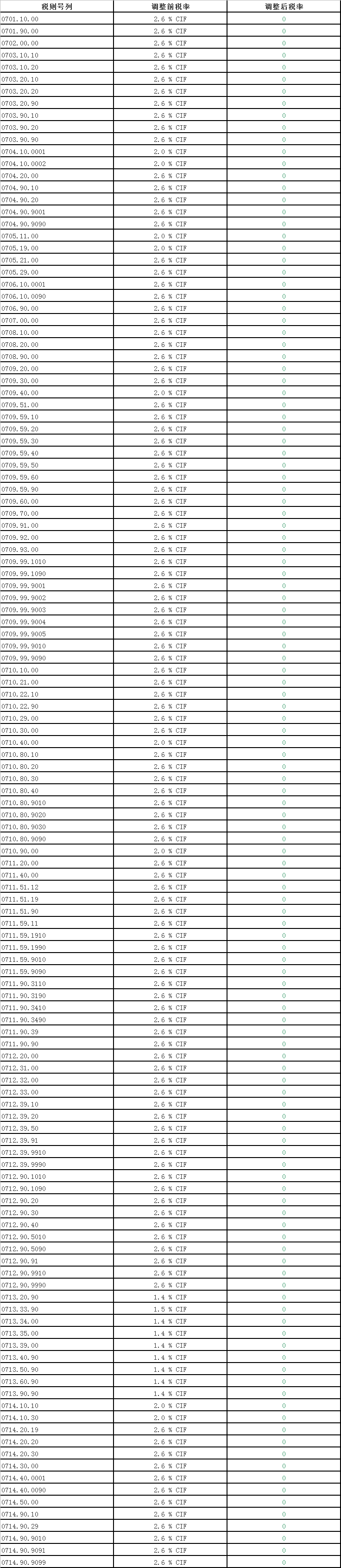 其中食用蔬菜、根及块茎涉及税号129个。具体调整如下: